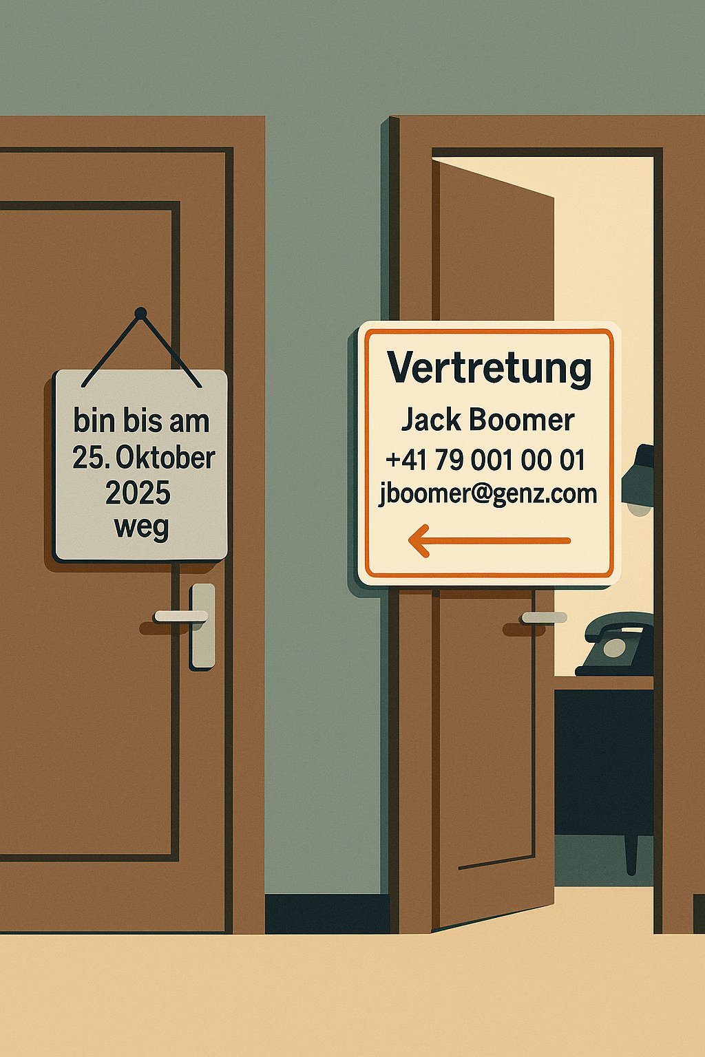 Es geht nicht um ständige Verfügbarkeit rund um die Uhr. Aber ein Hinweis darauf, wer in der Abwesenheit kontaktiert werden kann, sollte selbstverständlich sein.